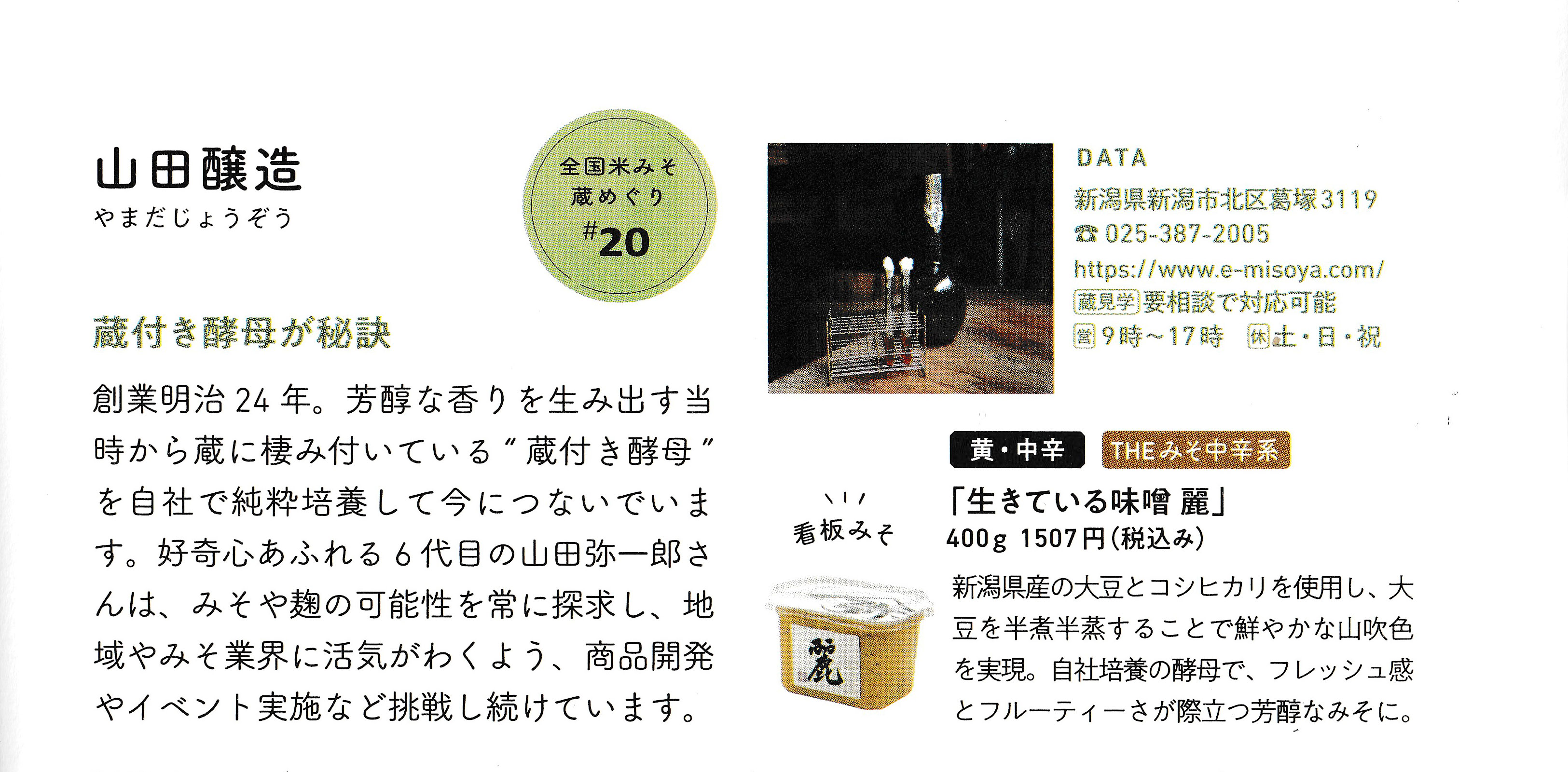 実践料理研究家・みそ探訪家の岩木みさきさんの著書「新しいみその教科書 日本人に味噌が必要な7つの理由」に山田醸造を取り上げて頂きました。