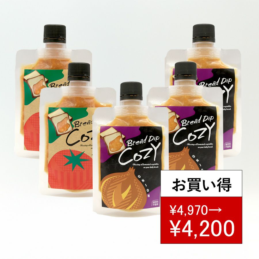 他の画像を見る Bread Dip Cozy5袋セット クール便でお届け 定価 ¥ 4,970 のところ 販売価格 ¥ 4,200 税込 Cozyの新習慣を試してほしくて、期間限定の特別セット。 パン食で野菜と発酵の力を体験してください。 詳細を見る お気に入りに登録する