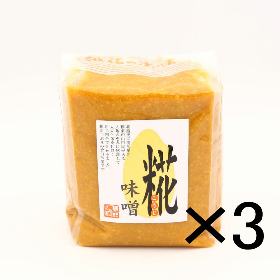 他の画像を見る 新潟コシヒカリ糀みそ「豪農」 800g×3 宅配便(冷蔵可) 定価 ¥ 5,346 のところ 販売価格 ¥ 5,080 税込 半年分(1世帯)の目安です。 カートに入れる お気に入りに登録する
