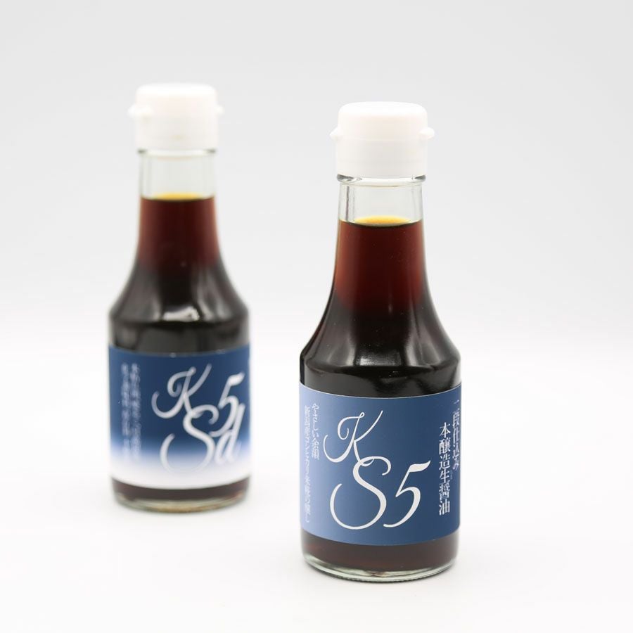 - 『KS5』は、大豆・麦・米で麹を作り、ぽたりぽたり絞った深い香りとうまみとを醸すコク深なタイプです。