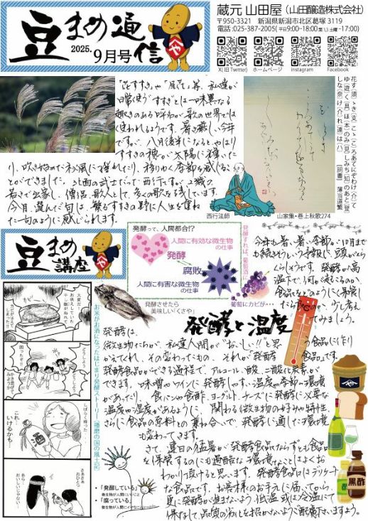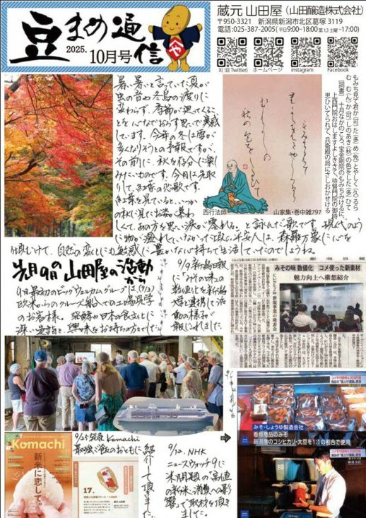三代目が紡いだ「味噌通信」。お届けする商品に同梱していた山田屋のおたよりです。それを今に受け継いだ女将が「豆まめ通信」として、 山田屋の様子や、商品案内、使えるレシピの「豆まめ通信」に込めて、毎月更新しています。 バックナンバーから順次皆様にご紹介していきます。